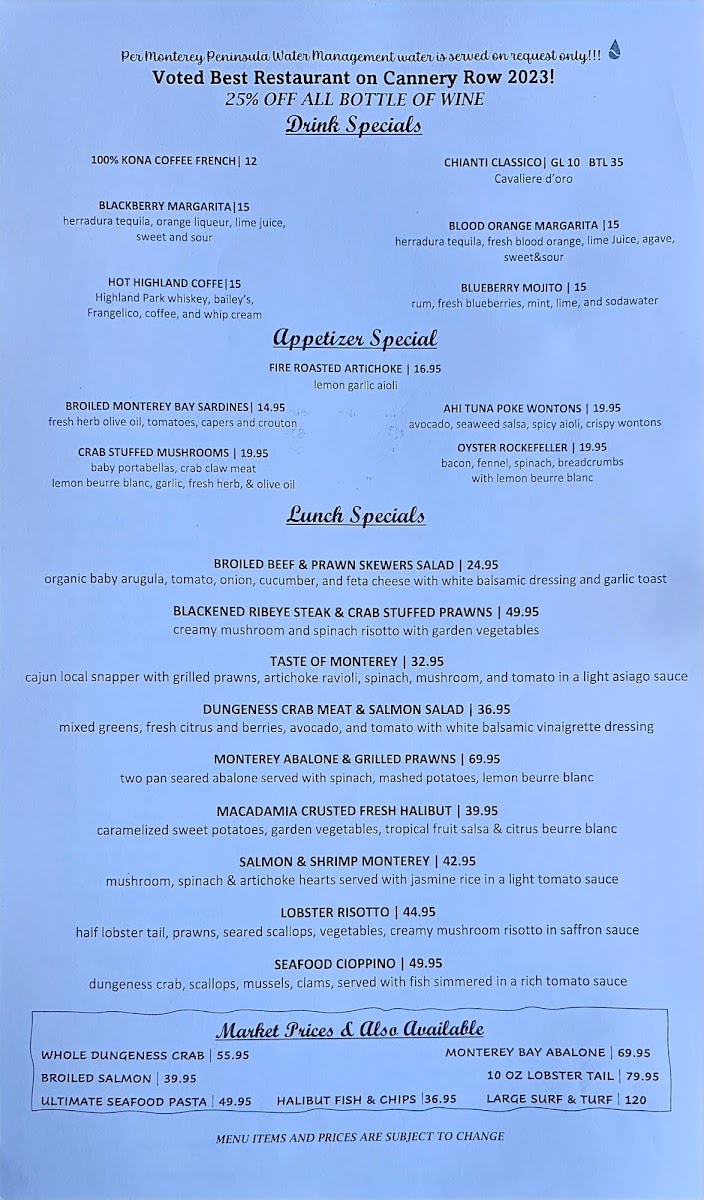 Located on the picturesque Cannery Row in Monterey, CA, Fish Hopper is a seafood lover's paradise that combines breathtaking ocean views with a menu brimming with fresh, flavorful dishes. This charming restaurant invites you to indulge in a culinary journey along the coast, where every meal is designed to offer an unforgettable experience.